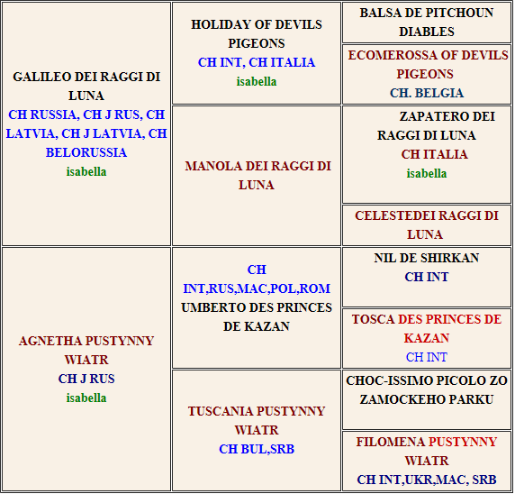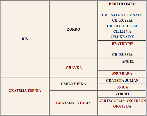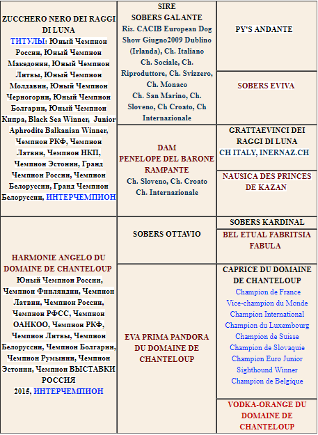 Подробную родословную (с именами, титулами, фотографиями предков), а также фотографии и родословные всех щенков , можно посмотреть тут